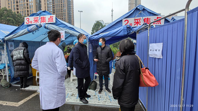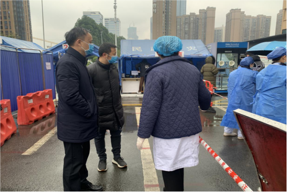 谢强主任一行先后深入核酸检测点、扩建发热门诊等点位,王晋川院长对医院疫情防控风险排查整改落实情况,分级诊疗工作和发热门诊规范化项目扩建情况的工作进行了汇报。为严格按照成都市卫生健康委员会《关于对全市医疗机构开展新冠肺炎疫情防控风险大排查的紧急通知》要求,四川友谊医院积极落实重点人群核酸必检、规范预检分诊和发热门诊管理、强化住院病区管理、加强全员培训、做好医疗秩序的组织安排、严格做好今冬明春防疫物资的储备。