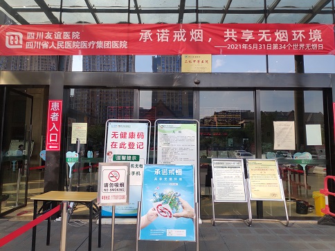 为了维护人民群众健康,鼓励患者或家人远离吸烟、二手烟的危害,拥有一副健康的体魄,共同促进无烟环境的建设。四川友谊医院作为无烟建设单位,大力倡导无烟环境、促健康环境。