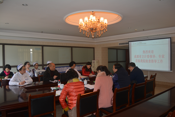 2018年1月4日下午,成都市卫计委技术审查委员会领导及专家一行4人莅临四川友谊医院,对医院三年来的医疗工作进行检查指导,此次检查旨在对医院医疗机构执业许可证校验申请作现场调研。四川友谊医院王晋川院长、赵丽君副院长及相关职能科室负责人陪同检查。